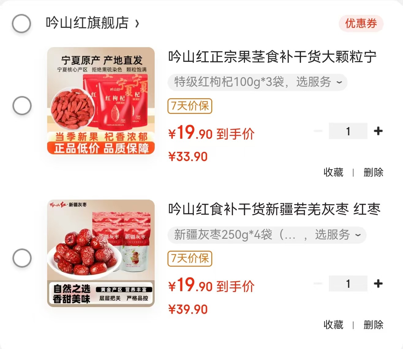 吟山红 正宗果茎食补干货 特级红枸杞100g*3袋【19.9】