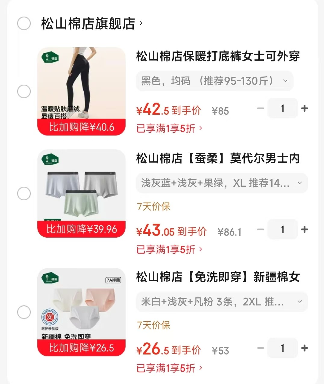 松山棉店 蚕柔莫代尔男士内裤10A抑菌 3条【42.6】