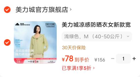78元!轻薄凉感款式防晒衣