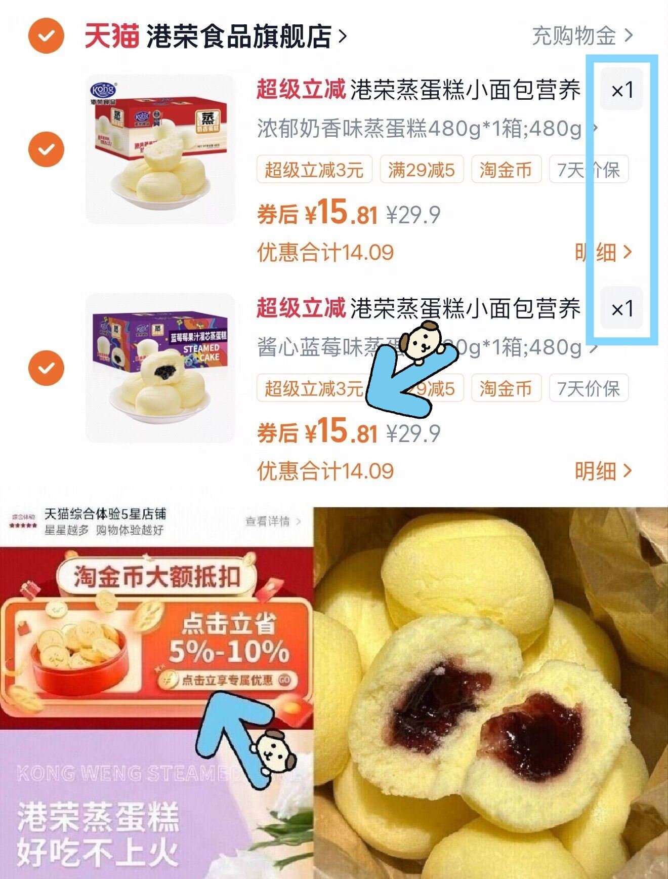 港荣多口味蒸蛋糕480g*2箱