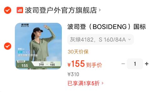 155元!波司登 女款国标时尚防晒衣