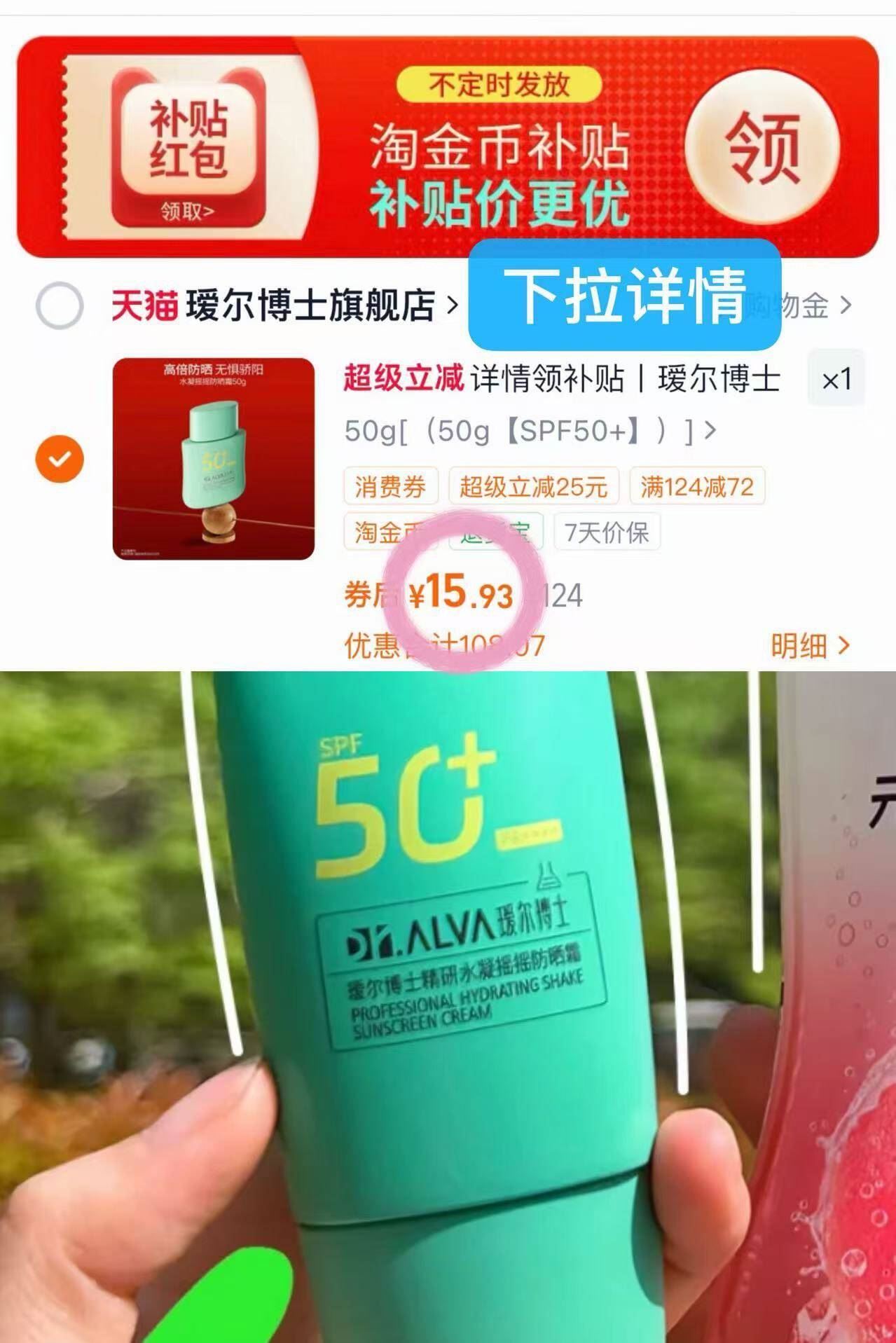 .瑷尔博士防晒神 SPF50+ 50g正装量 下拉叠惍币 户外出行必备啊好单发报员2026年03月16日 22:100举报 .瑷尔博士防晒神SPF50+ 50g正装量下拉叠惍币 户外出行必备啊https://m.tb.cn/h.iU2jquv-15元做到防晒 养护双在线它家防晒性价比是真快去复制文案