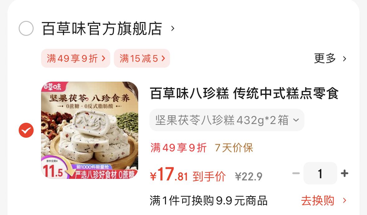 百草味 坚果茯苓八珍糕0蔗糖糕点432g*2箱