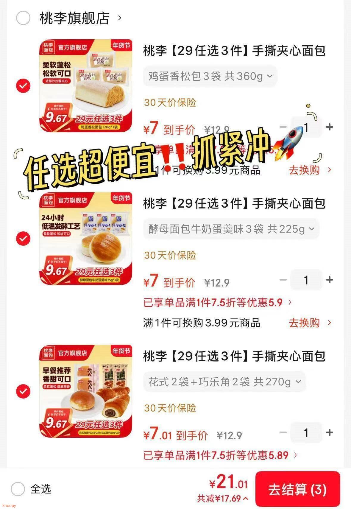 任选3件21元,低至1.7/袋起