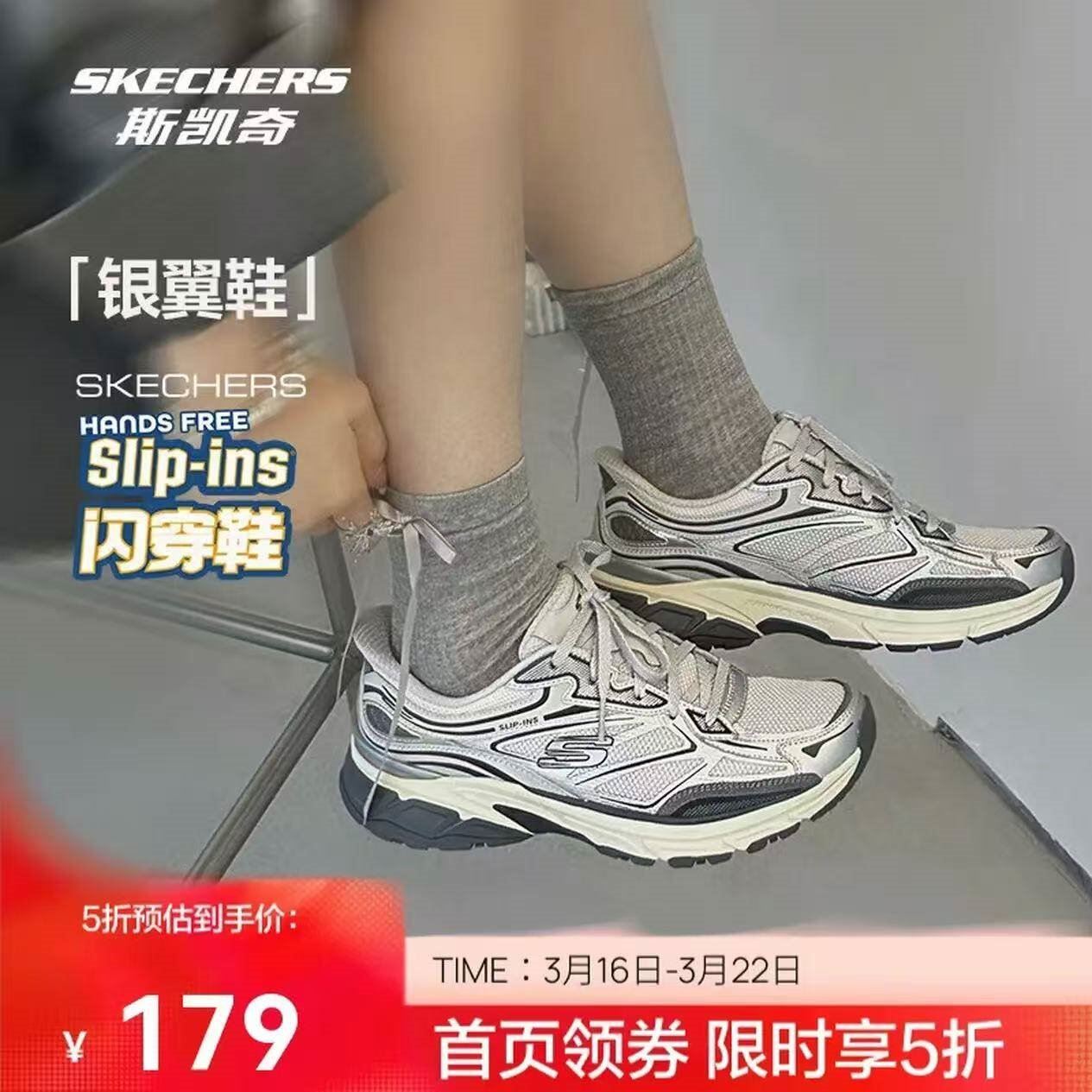 斯凯奇 银翼复古运动老爹鞋女