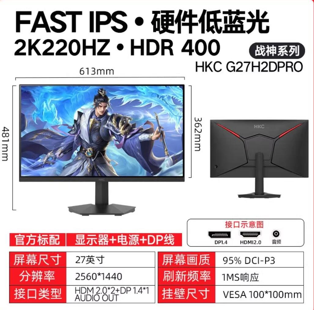 HKC 27寸2k220Hz (h27h2dPRO)显示器