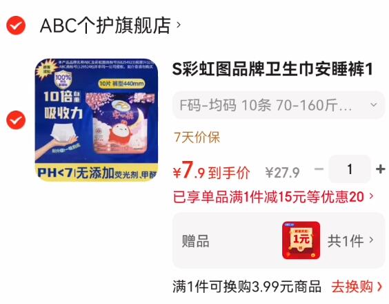 0.69元/条速!ABC安睡裤
