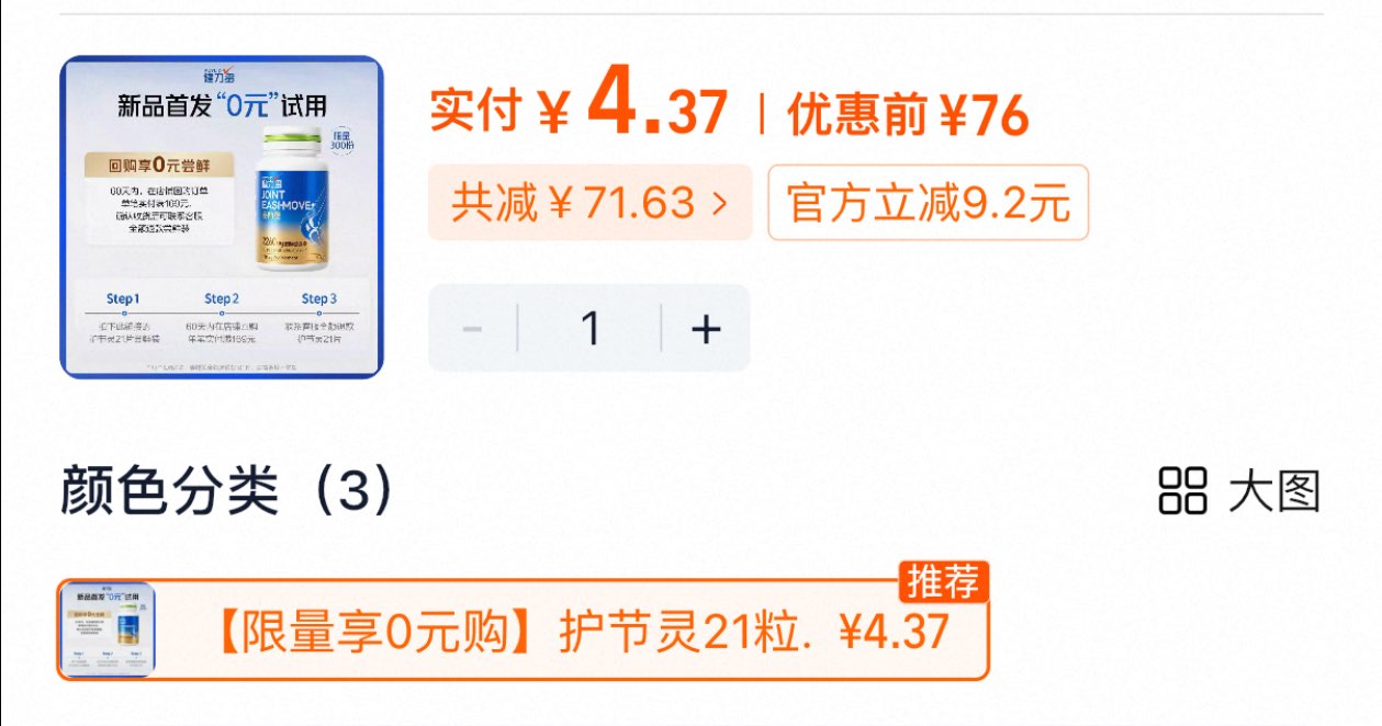 过金币4.37 健力多 港版护节灵氨糖软骨素钙片1瓶21粒好单发报员2026年03月18日 14:530举报 过金币4.37 健力多港版护节灵氨糖软骨素钙片1瓶21粒https://m.tb.cn/h.i59ru66复制文案