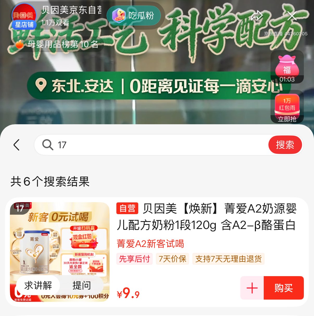 9.9元贝因美奶粉120g 叠加洪包雨更低