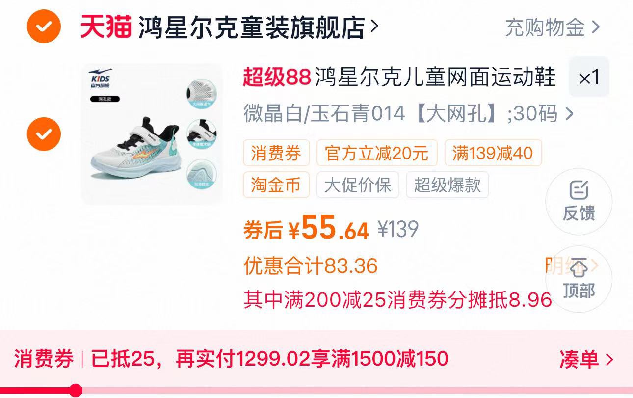 叠礼金 任拍1件 凑后55.6元 鸣鸥2|鸿星尔克儿童运动跑步鞋