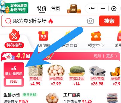先领特圿频道左上角4.1-4券