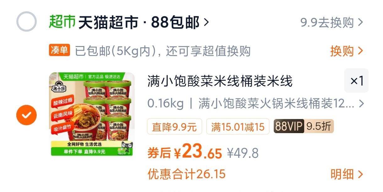 速满小饱酸菜火锅米线125g 88vlp23.66桶 折3.9/桶 好单发报员 2026年03月19日 18:52 0 举报 速满小饱酸菜火锅米线125g88vlp23.66桶 折3.9/桶https://m.tb.cn/h.i5TGTCa 复制文案