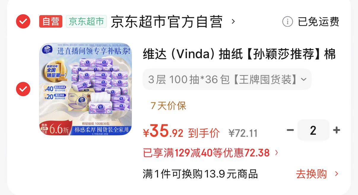 叠3首购拍2件71.8元 折1元/包