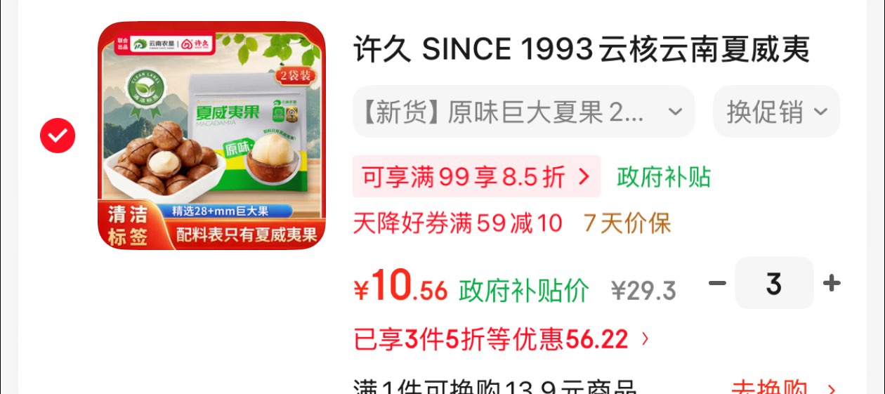 3件 学生号凑后10.56一件 许久 SINCE好单发报员2026年03月19日 20:420举报 3件 学生号凑后10.56一件许久 SINCE 1993云核云南夏威夷果袋装250g*2原味巨大果易剥新货零食28 mhttps://u.jd.com/c1dC5YP湊单一件https://u.jd.com/cOtUIS7复制文案