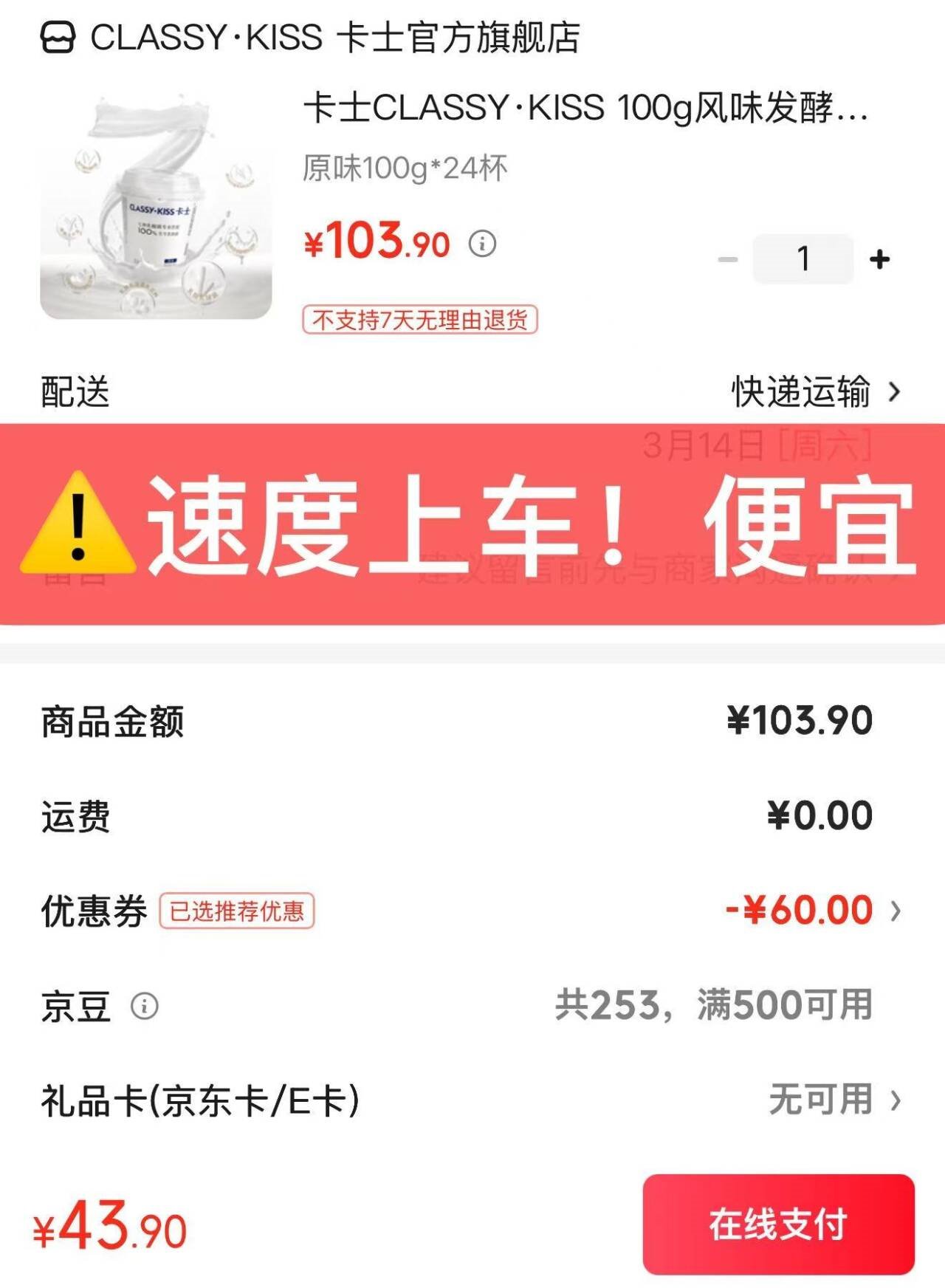 43.9元,才1.8/杯 新鲜日期