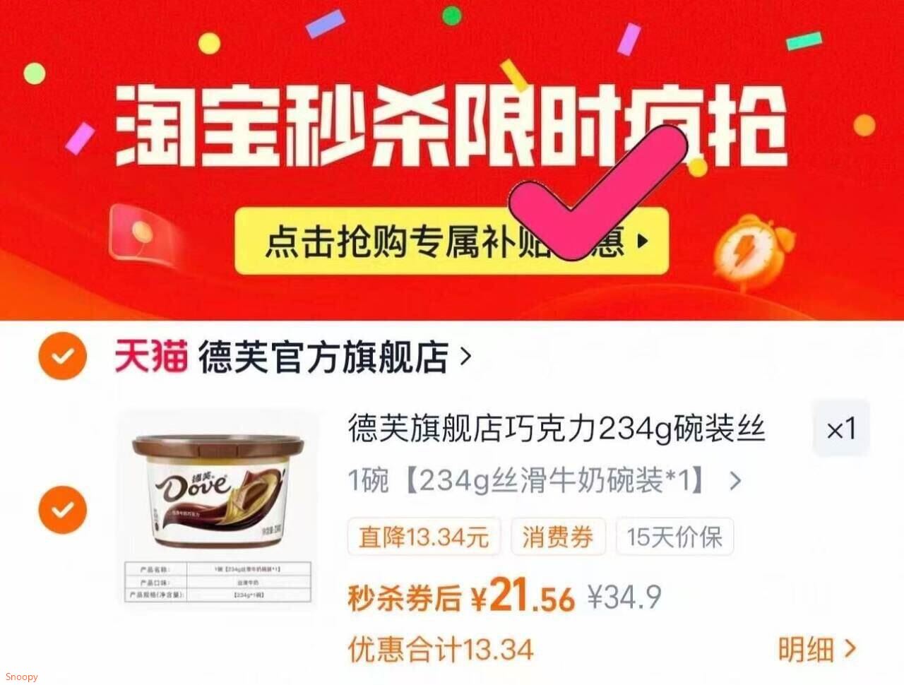 速度德芙丝滑牛奶巧克力 234g 下拉详情 拍21.5元元 大碗装好单发报员2026年03月20日 09:560举报 速度德芙丝滑牛奶巧克力234g 下拉详情 拍21.5元元大碗装 纯巧克力没有凑数的https://m.tb.cn/h.igxJPe2复制文案