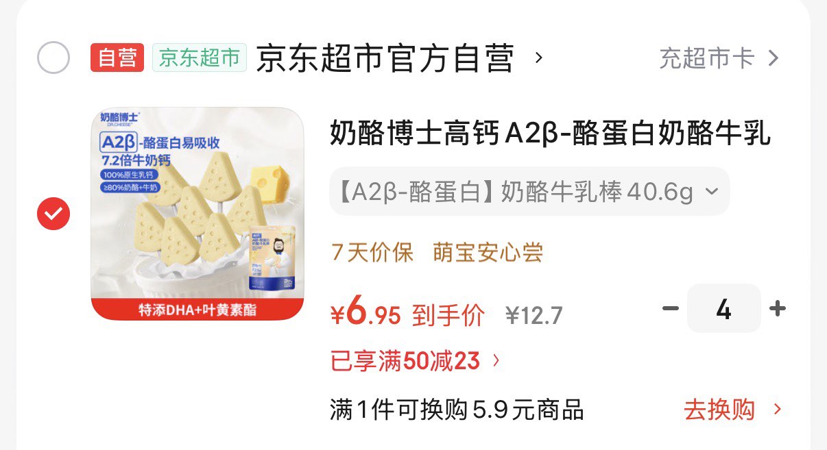 奶酪博士高钙A2β-酪蛋白奶酪牛如棒40.6g/7支