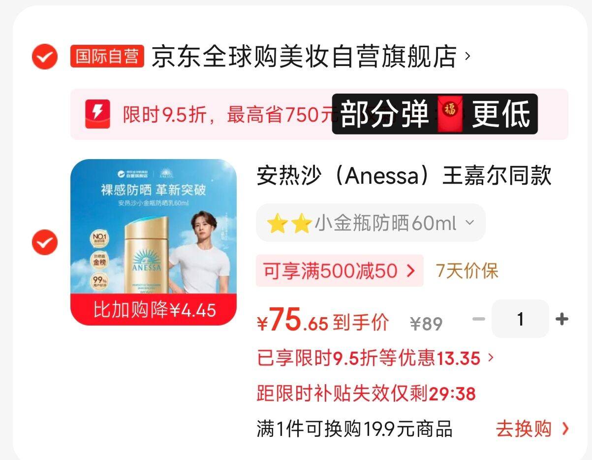 安热沙小金瓶防晒霜60ml 77.7元好单发报员2026年03月26日 13:520举报 安热沙小金瓶防晒霜60ml77.7元,部分弹更低-领https://u.jd.com/cG39zIe拍https://u.jd.com/cg3XWXp凑https://u.jd.com/cr3R5XN复制文案
