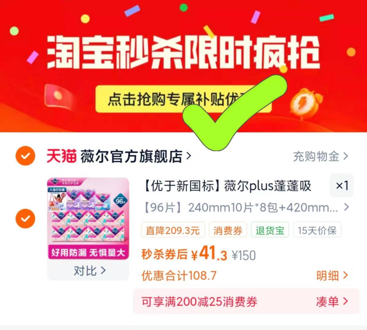 薇尔卫生巾11包 41.3元好单发报员2026年03月26日 14:290举报 下拉详情薇尔卫生巾11包一共96片组合41.3元0.4/片医护级认证很靠谱!薄薄一片吸收快到离谱 不会反渗更安心https://m.tb.cn/h.i7yOjIC复制文案