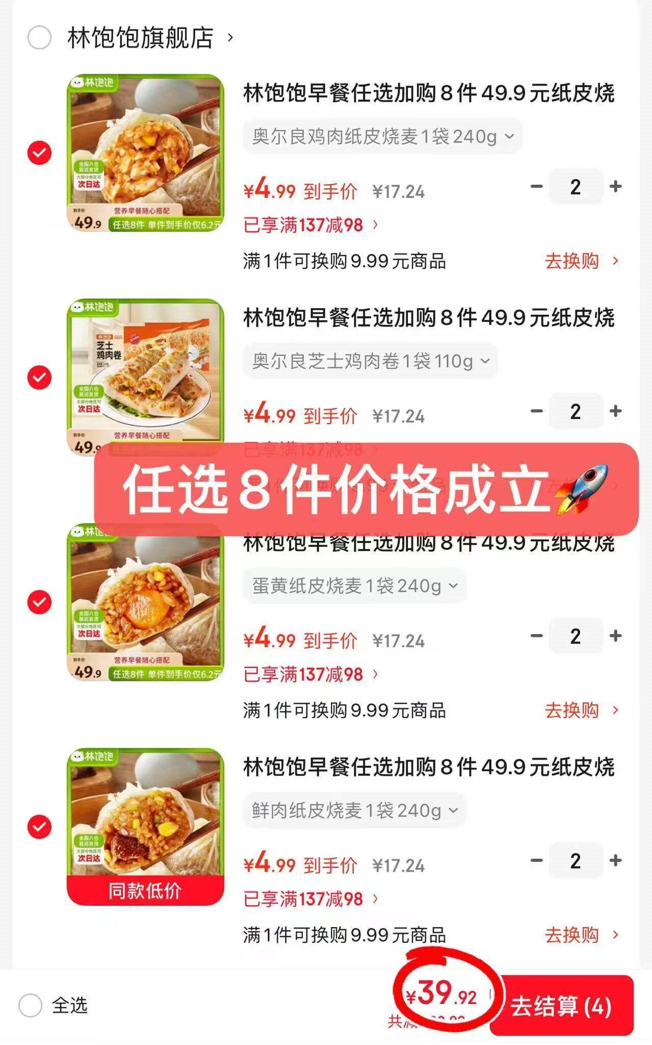 任选8件39.9元,折4.9元/件