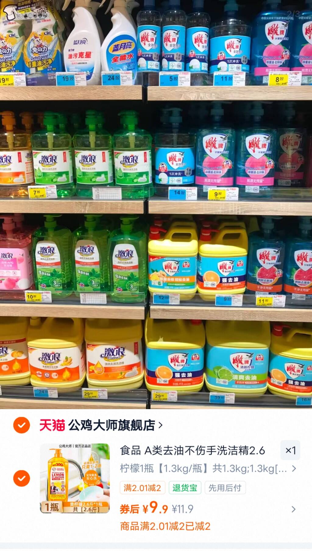 公鸡大师洗洁精1.3kg/瓶 9.9元好单发报员2026年03月26日 18:050举报 A类食品级!可以直接洗果蔬直接囤够一年量 柠檬/青柠可选公鸡大师洗洁精1.3kg/瓶9.9元线下随便一个牌子都十几二十块https://m.tb.cn/h.iSx6nm4复制文案