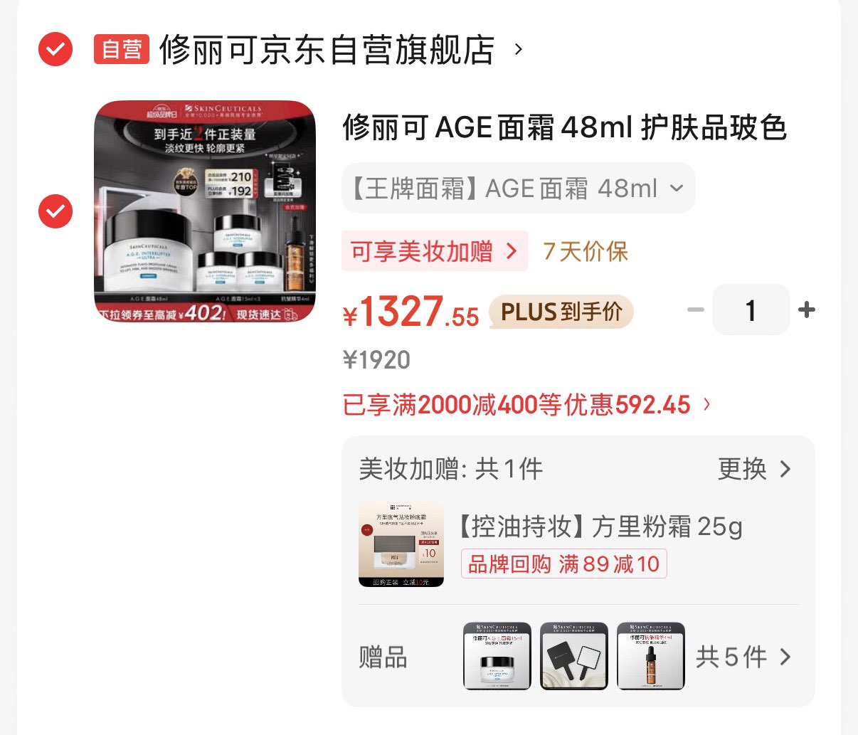 修丽可AGE面霜48ml 凑后1327.5元