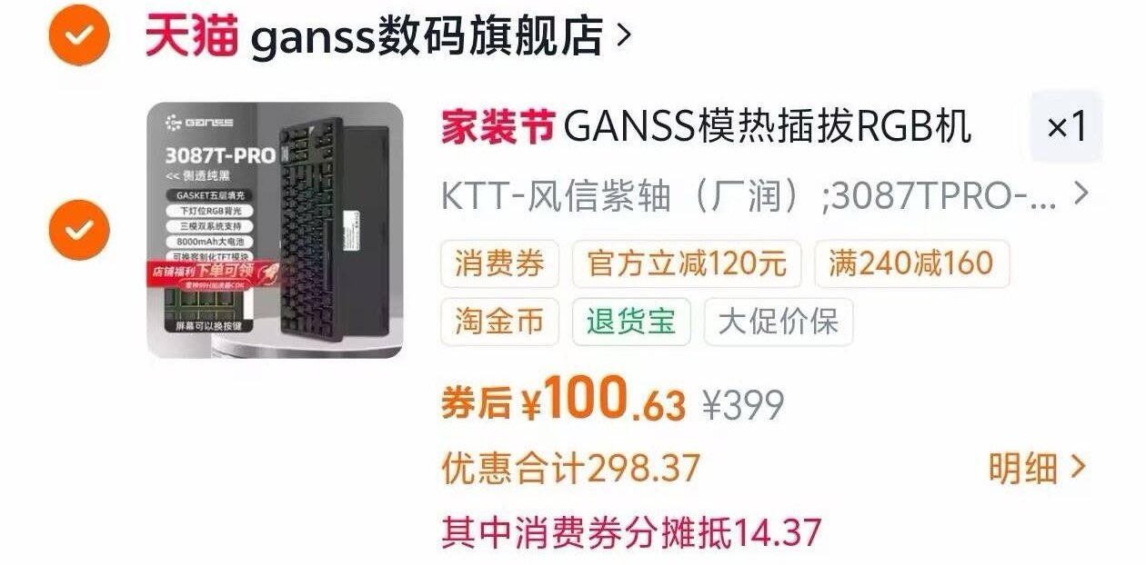 高斯GS3087T Pro 三模键盘 100元