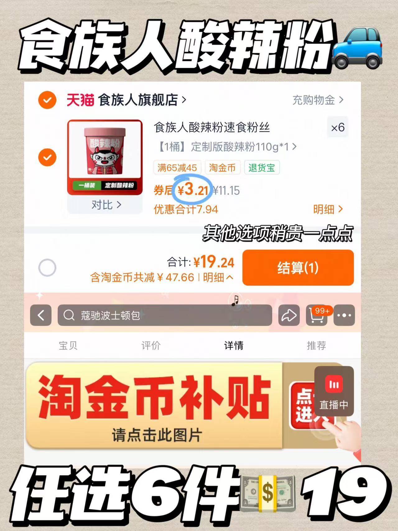 食族人酸辣粉 6元 19桶好单发报员2026年03月28日 16:240举报 3.2/桶食族人酸辣粉拍6元19 超市两桶就这忦疯狂回购无数次无敌香https://m.tb.cn/h.iizHwju复制文案