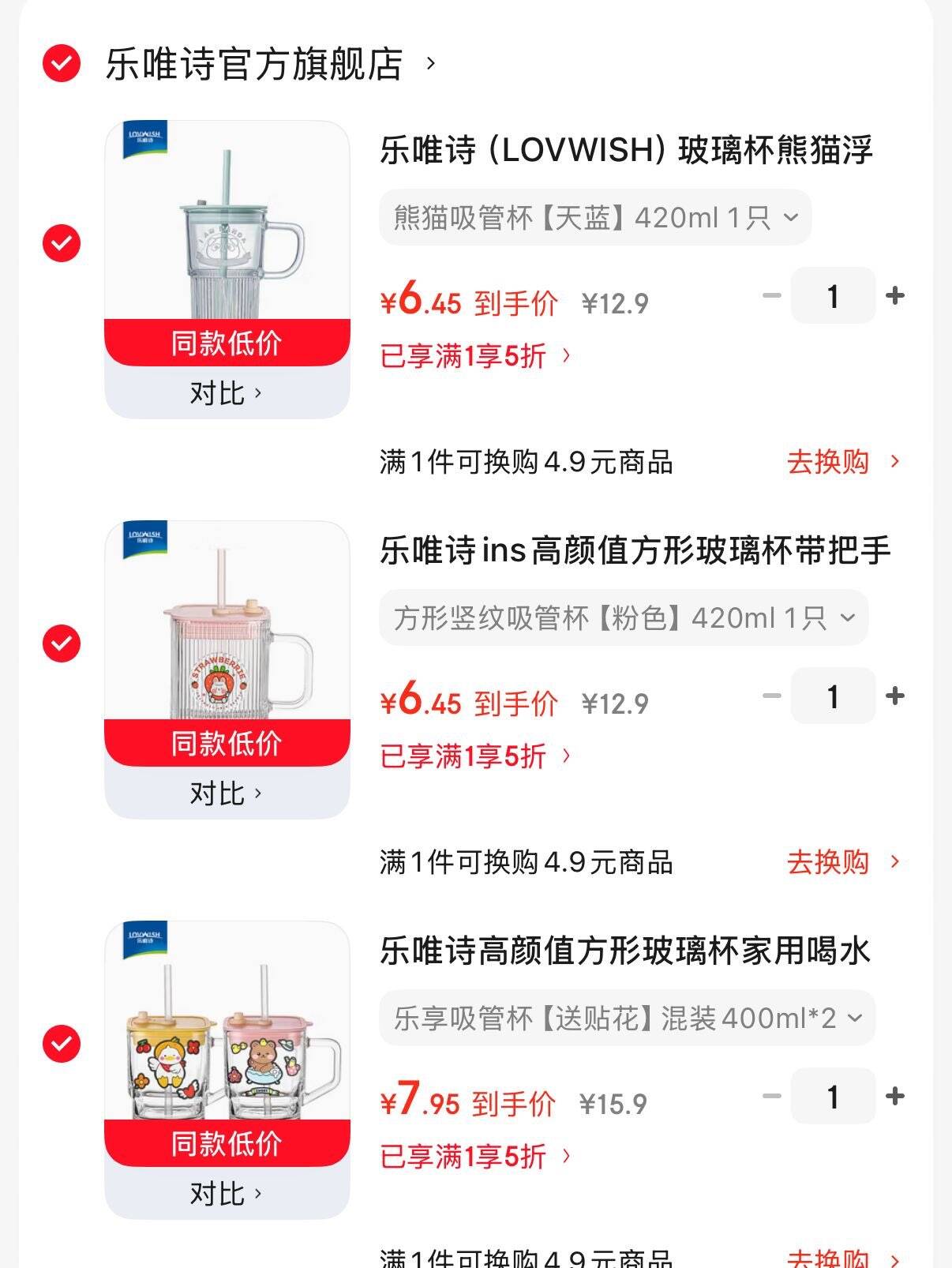 7.95元乐享吸管杯混装400ml*2