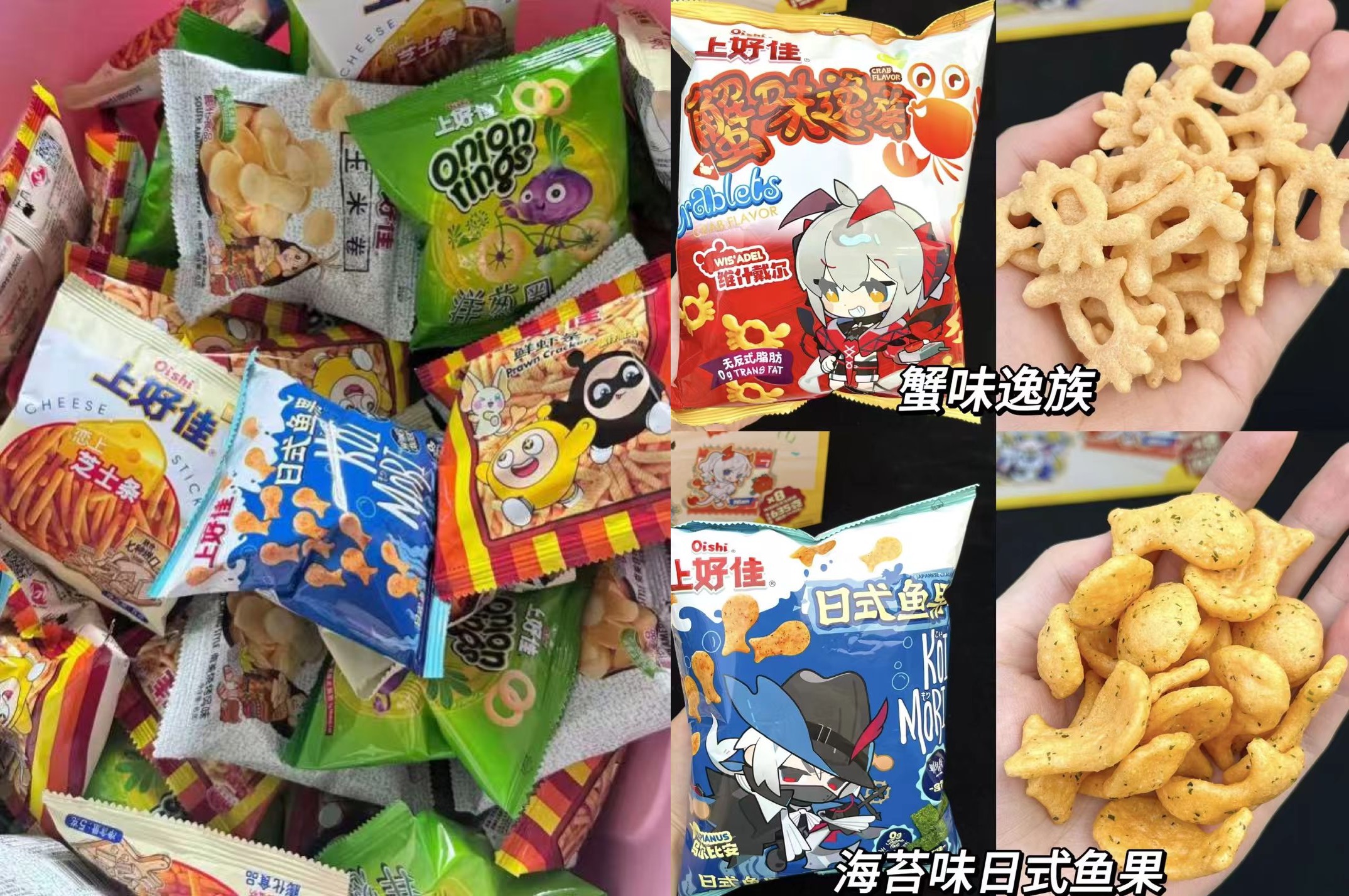 鲜虾条、薯片、洋葱圈都有,口味丰富,孩子也爱吃