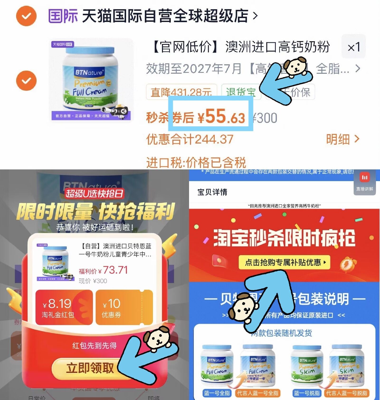 蓝胖子澳洲牛奶粉1kg 55元好单发报员2026年03月29日 09:530举报 神价速度 才55元的蓝胖子澳洲人气最最火的奶粉之一---【蓝胖子】澳洲牛奶粉1kg复制这条信息打开手机陶宝https://m.tb.cn/h.i8ck0sJ 下拉进秒杀 8.19淘礼金复制文案