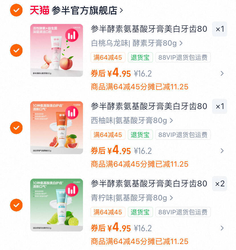 参半酵素牙膏任选4支*80g 19.8元好单发报员2026年03月29日 10:230举报 4.9/支!参半酵素牙膏神忦 超多窾任选拍4支*80g19.8元清新口气有效洁白 速度去拍 https://m.tb.cn/h.iiCQODi复制文案