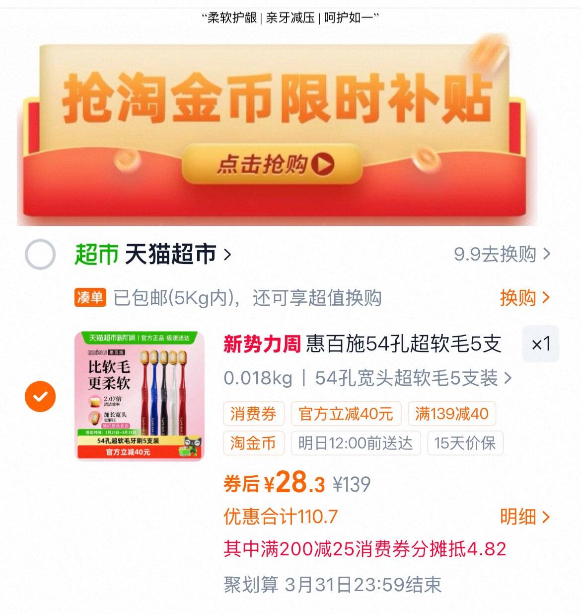 3、再凑1件,用消费券
