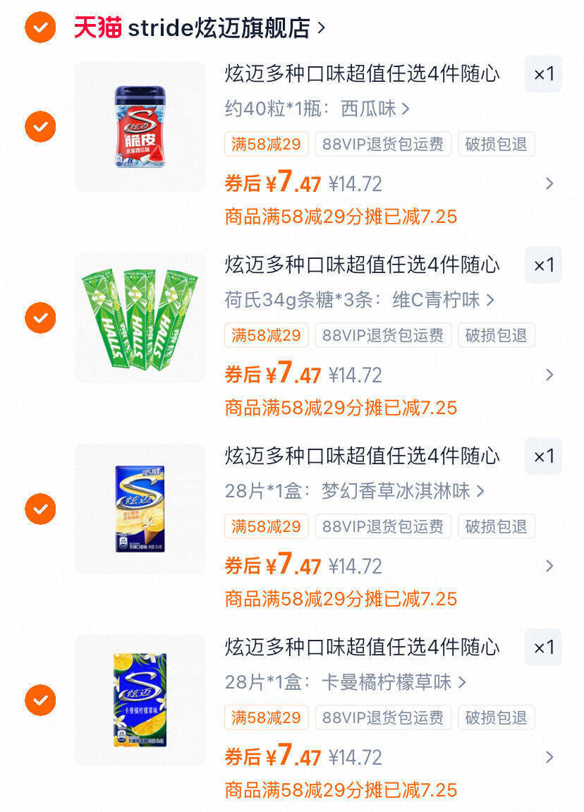 炫迈口香糖合集任选4件 29.8元好单发报员2026年03月29日 14:160举报 5.9元/件 炫迈口香糖合集任选4件 贈1件29.8元全是他家爆窾!比线下划蒜https://m.tb.cn/h.iRYuWpJ复制文案