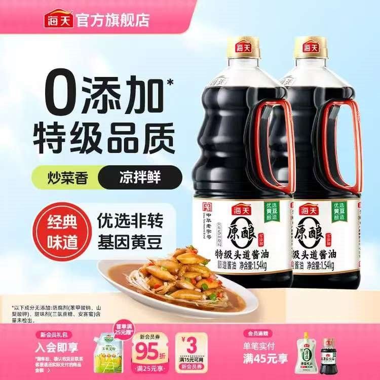 海天 0添特级酱油1.54kg*2瓶 25.2元 好单发报员 2026年03月29日 18:39 0 举报 ——海天调料发車——海天 0添特级酱油1.54kg*2瓶https://u.jd.com/c6WNUfQ 26.9元,Plus到手实付25.2元*炒菜/煲汤/点蘸/凉拌等不错 复制文案