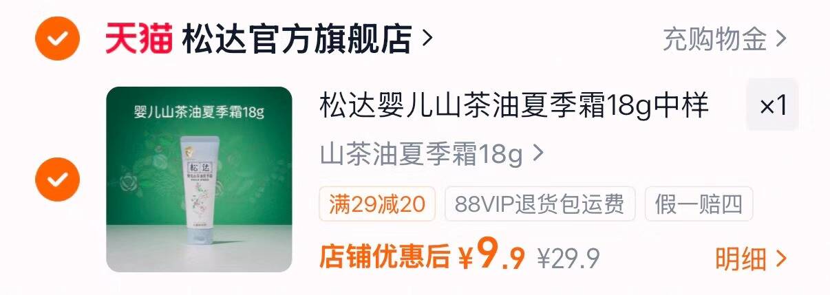 松达山茶油夏季霜18g 9.9元好单发报员2026年03月29日 20:390举报 天热了!该给莹贝换新的面霜啦!绵密冰沙质地好吸收不油腻松达 山茶油夏季霜18g9.9元https://m.tb.cn/h.ijnrME9复制文案