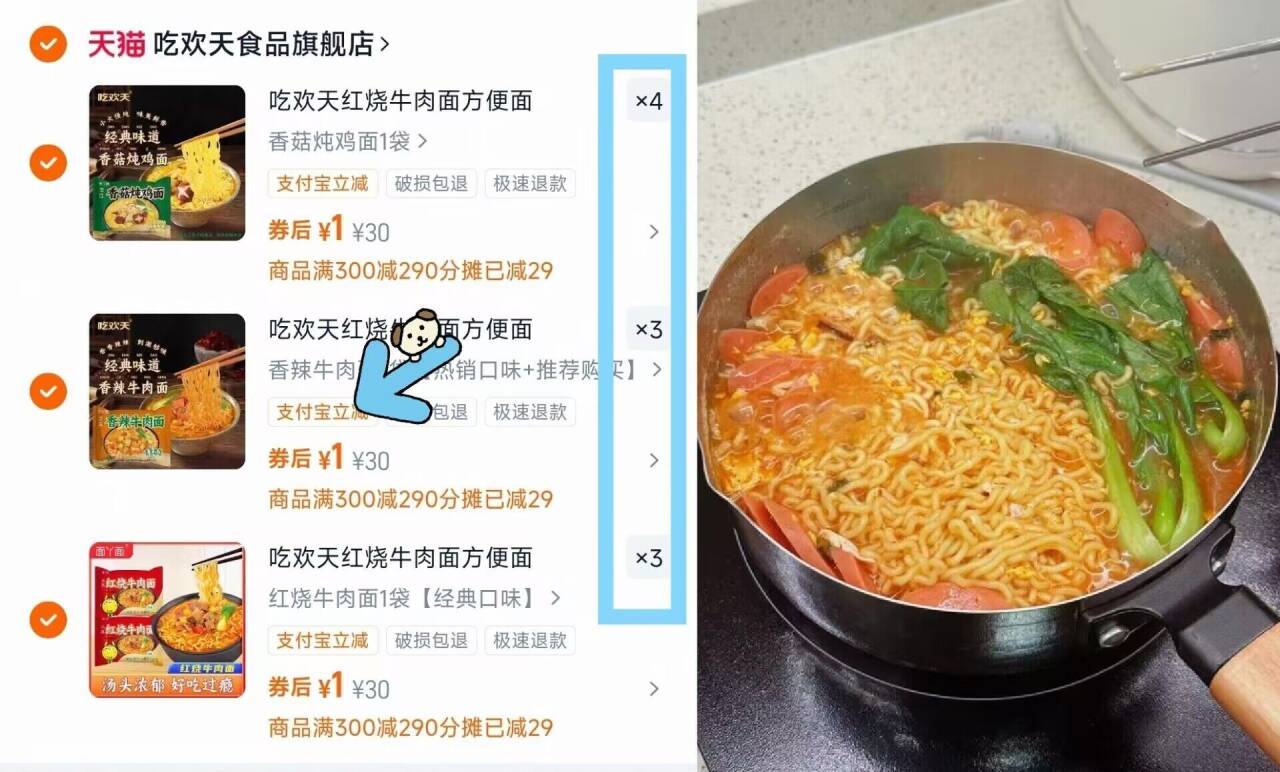 吃欢天红烧/香辣方便面拍10件 10元好单发报员2026年03月30日 11:550举报 速度,拍10件10元!速度,拍10件10元!【吃欢天】红烧/香辣方便面复制这条信息打开手机陶宝https://m.tb.cn/h.iRHE3yU线下随便一袋都要两三块的!复制文案