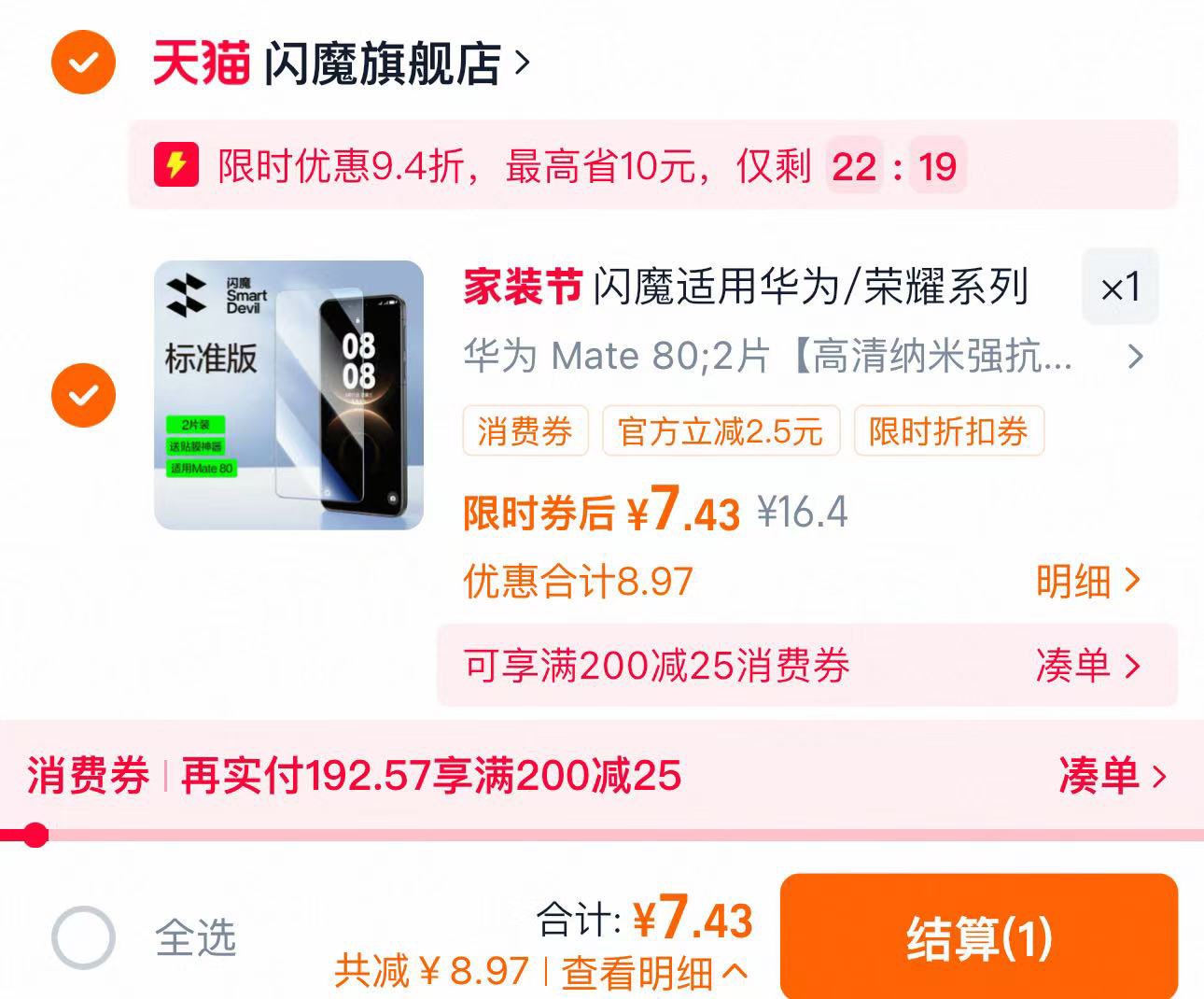 闪魔适用华为全系列钢化膜2片 7.43元好单发报员2026年03月30日 12:310举报 7.9元起 拍16.4选项如弹9.4店铺虹包 拍下7.43元闪魔适用华为全系列钢化膜2片https://m.tb.cn/h.i878LQ1复制文案