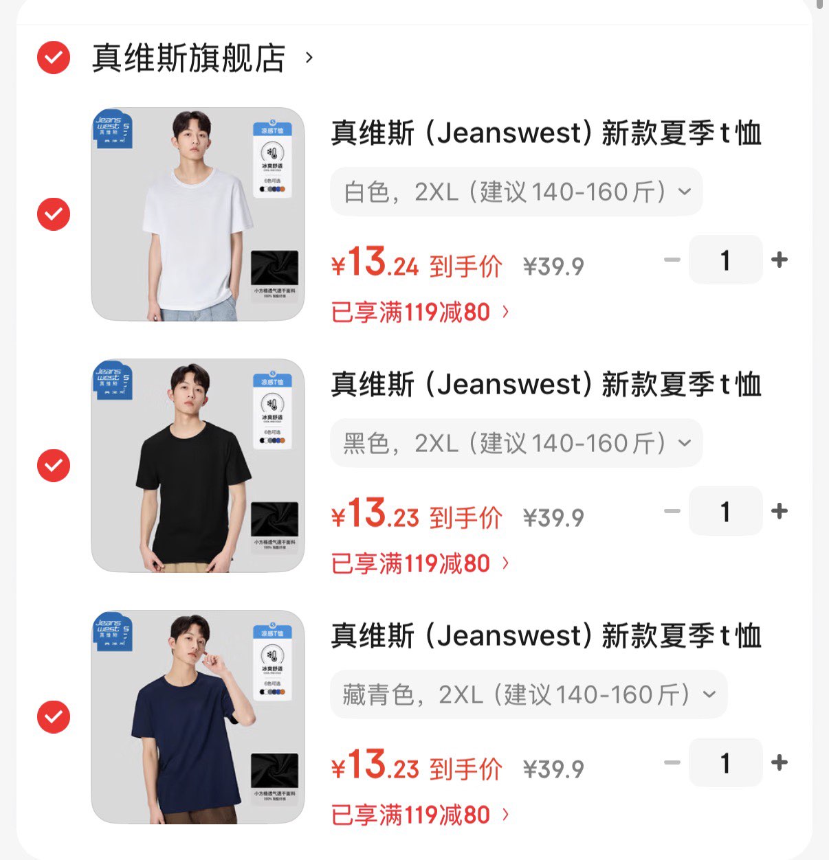 真维斯圆领凉感短袖t恤 任选3件 39.7元好单发报员2026年03月30日 12:470举报 领119-80券https://u.jd.com/cOEsKDJ 真维斯圆领凉感短袖t恤任选3件39.7元 折13.2/件https://u.jd.com/crEtix0 复制文案