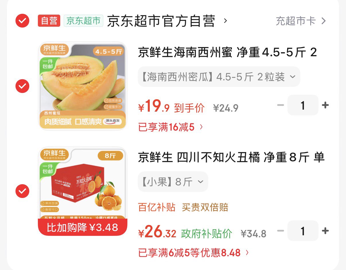 京鲜生四川不知火丑橘净重8斤 26.3元,京鲜生海南西州蜜2粒净重4.5-5斤 19.9元好单发报员2026年03月31日 00:050举报 京鲜生 四川不知火丑橘 拍下26.3元 净重8斤 https://u.jd.com/c6lw0O7 京鲜生海南西州蜜2粒拍下19.9元 净重4.5-5斤https://u.jd.com/cGln0pD 复制文案