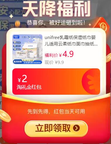 unifree云柔乳霜纸40抽5包 4.9元