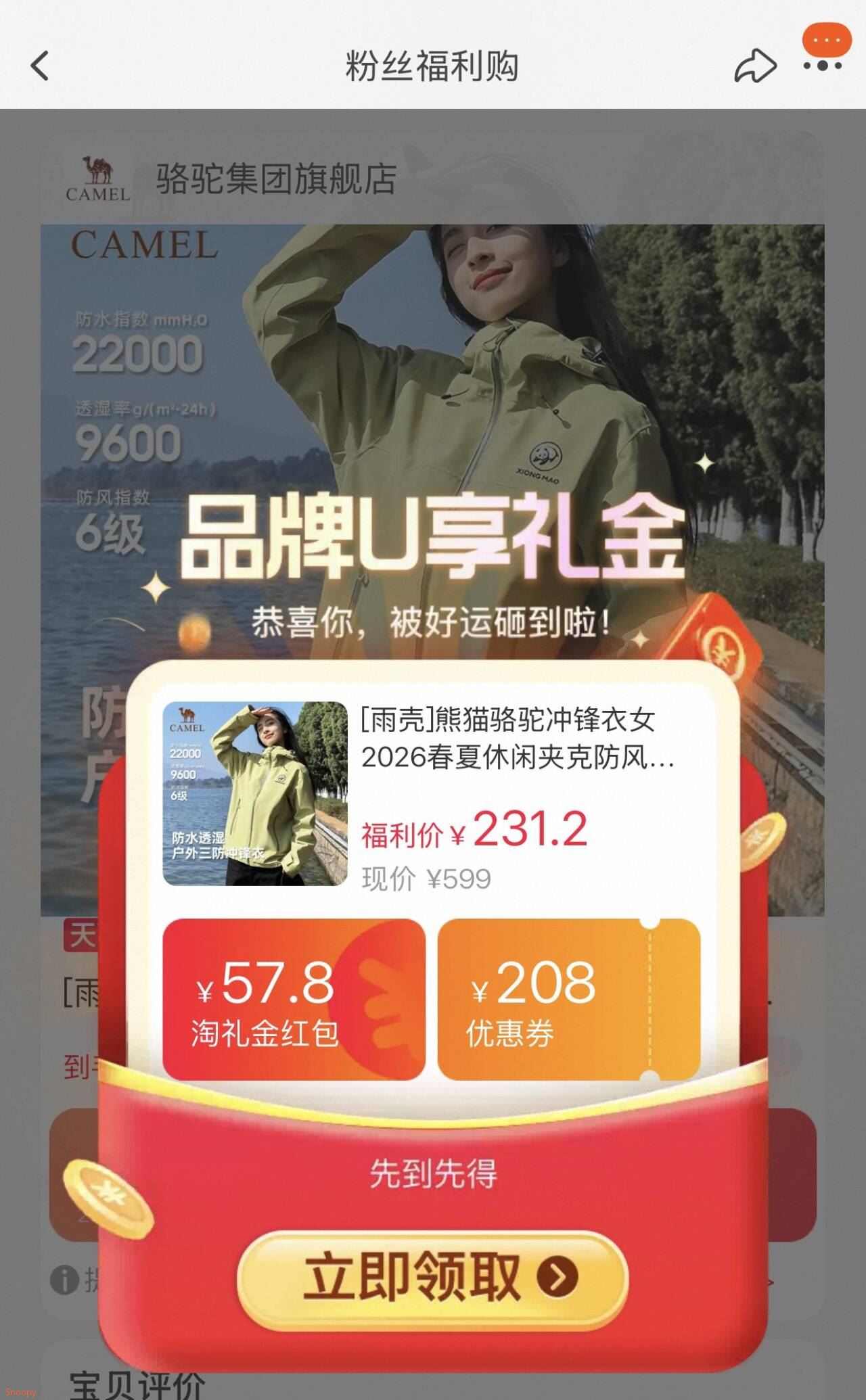 骆驼熊猫雨壳2.0连帽冲锋衣2026,到手【164.1】