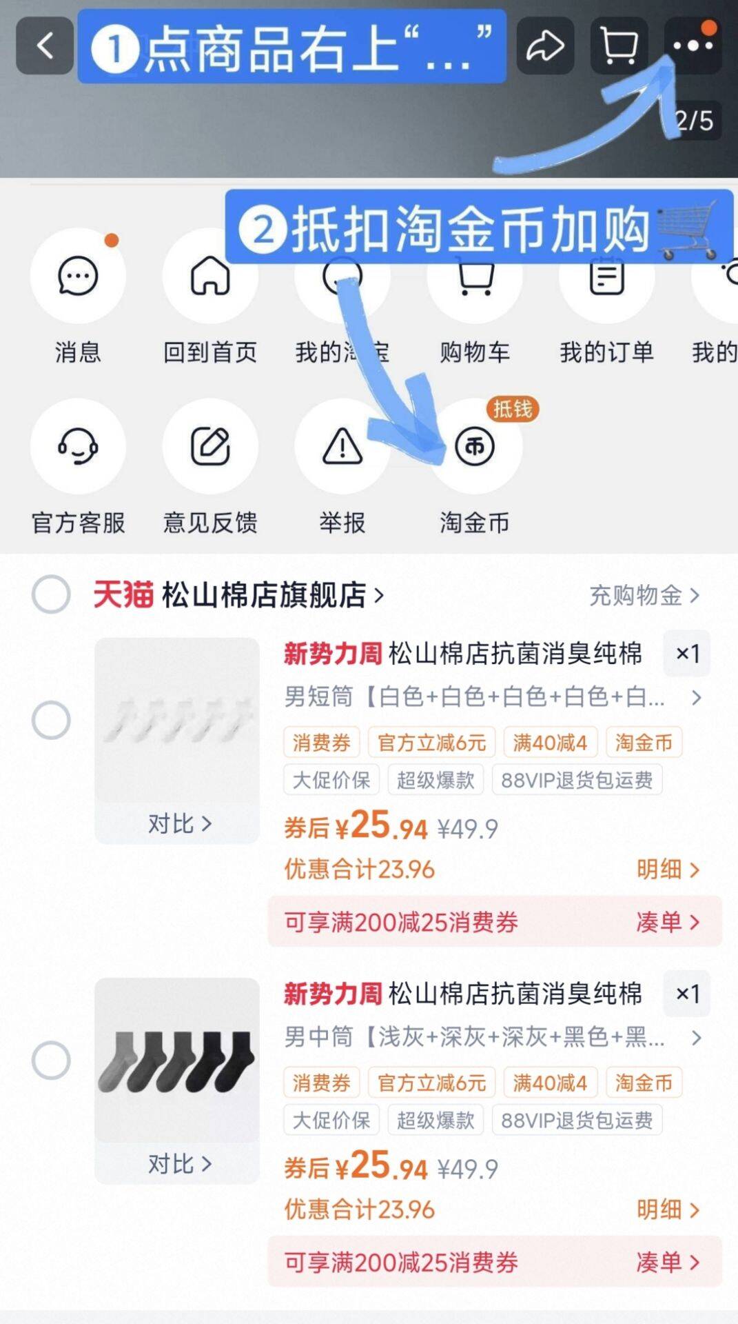 松山棉店纯棉足底按摩袜子5双 25.9元