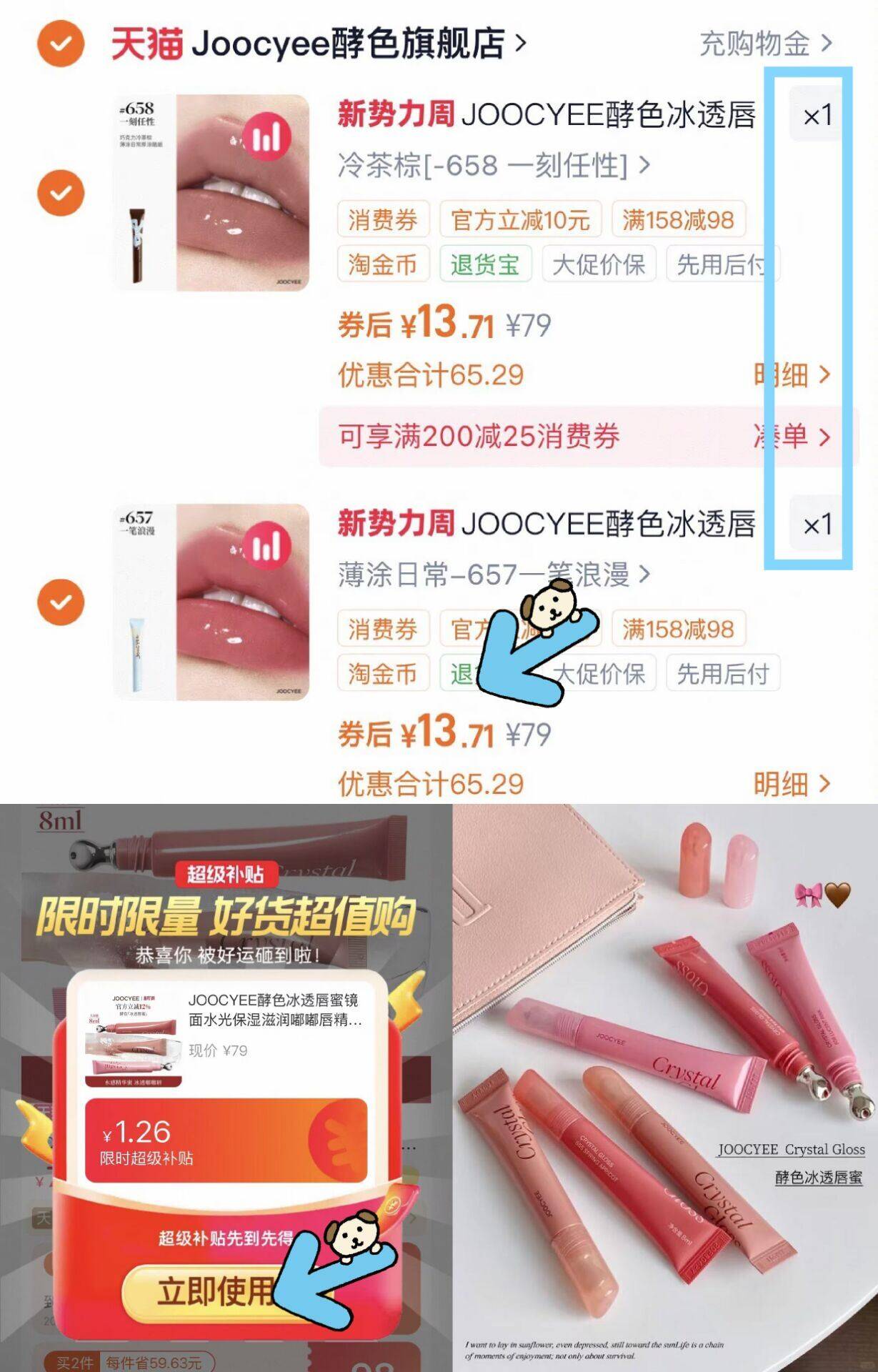 酵色冰透唇蜜3支 拍2件 送mini唇釉 27.4元好单发报员2026年03月31日 17:070举报 神价速锁 折才9.1元一件!拍2件27.4元!送mini唇釉---JOOCYEE酵色冰透唇蜜3支复制这条信息打开手机陶宝https://m.tb.cn/h.iQ0VJZz 叠2.52礼金 10.06淘金币复制文案
