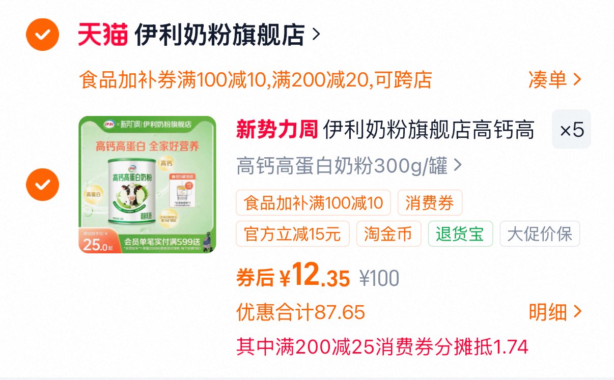 伊利奶粉高钙高蛋白300g/罐 拍五件 12.35元/罐好单发报员2026年03月31日 17:190举报 伊利 奶粉高钙高蛋白300g/罐拍五件桃金币凑食品加补券消费券后12.35/罐https://m.tb.cn/h.iQ0ssLU凑https://m.tb.cn/h.i9dIE90https://m.tb.cn/h.iQ0HKs3复制文案