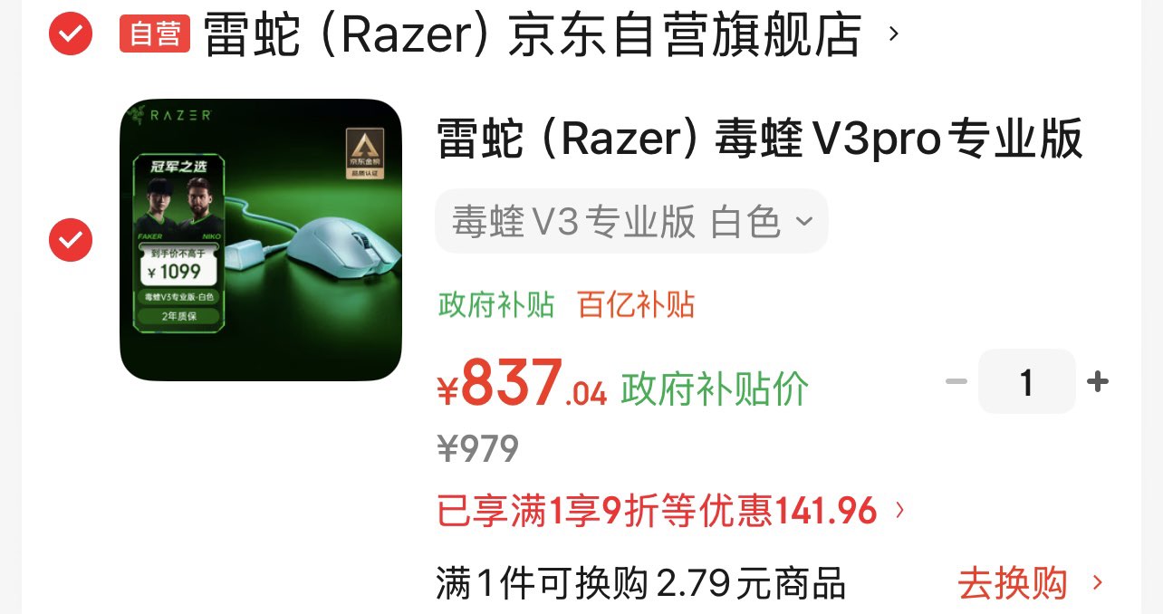 自营 【837】 雷蛇毒蝰v3pro