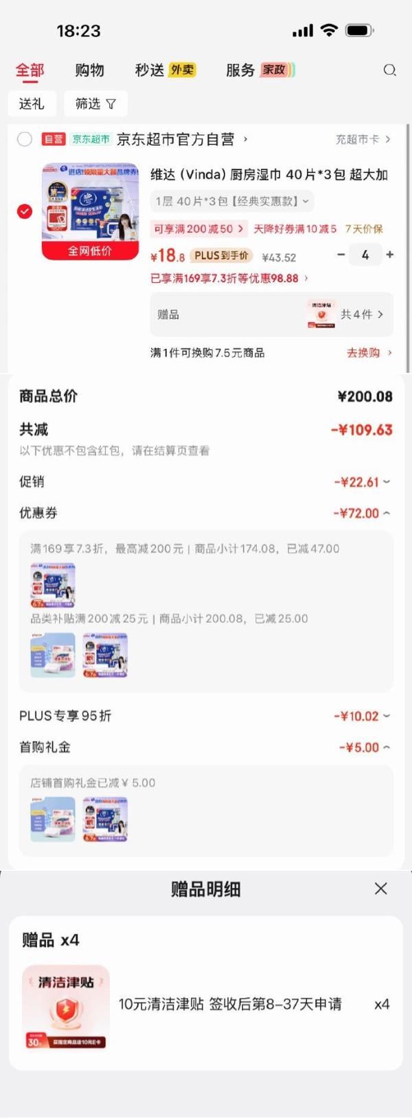 4首单,拍4件,凑后每件18.8/赠10元清洁津贴