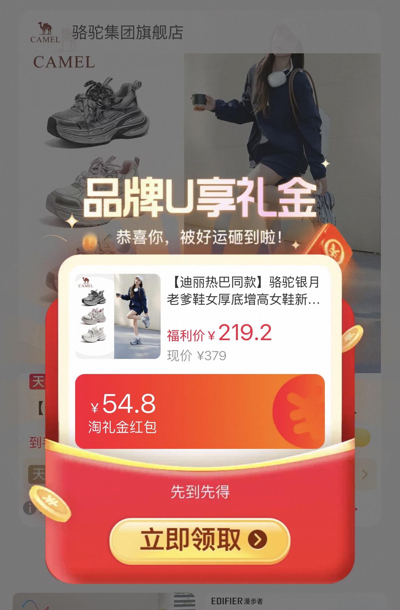 骆驼银月老爹鞋女厚底增高女鞋,最低到手【127.78】