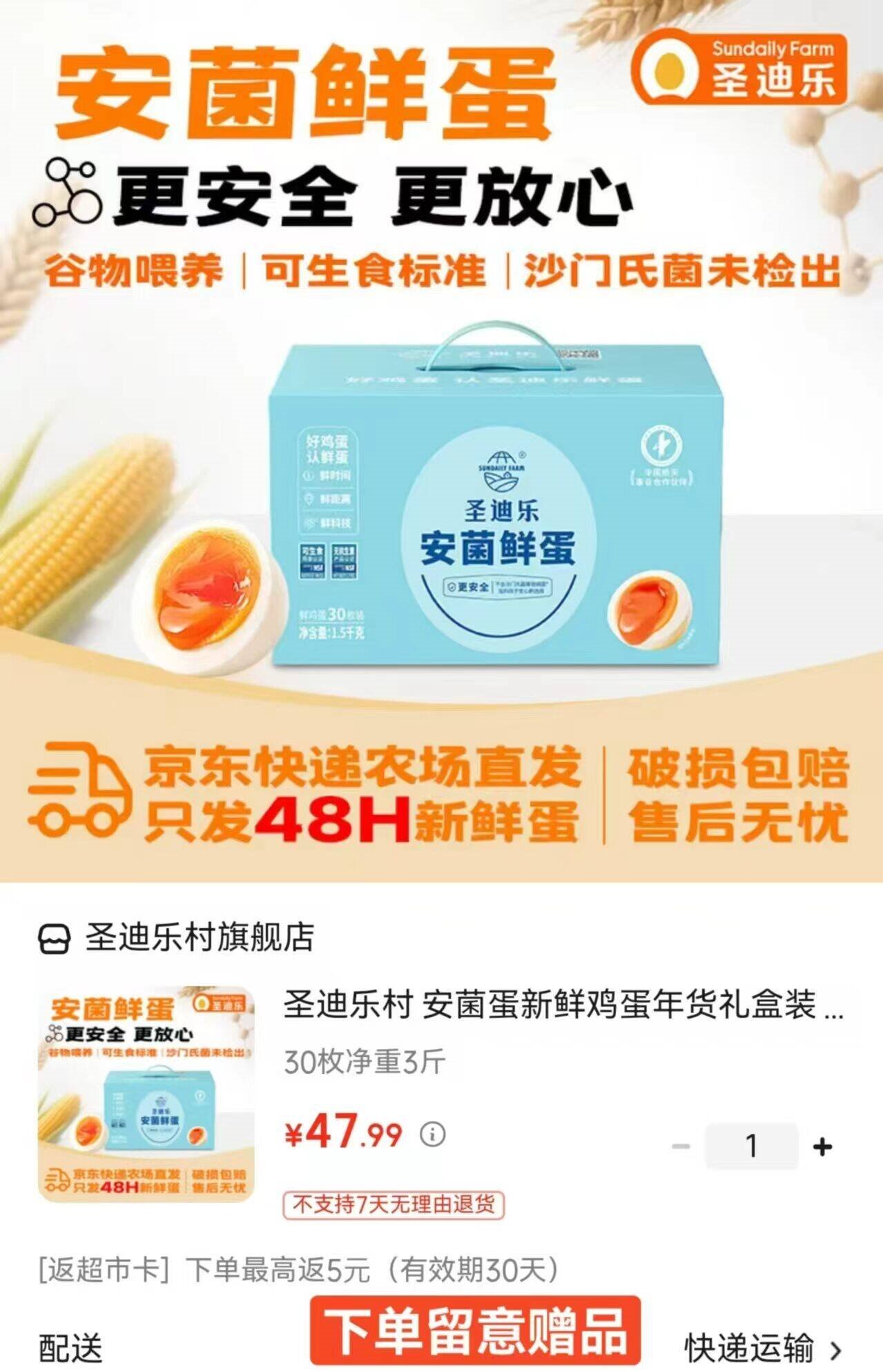 圣迪乐村 可生食鲜鸡蛋30枚
