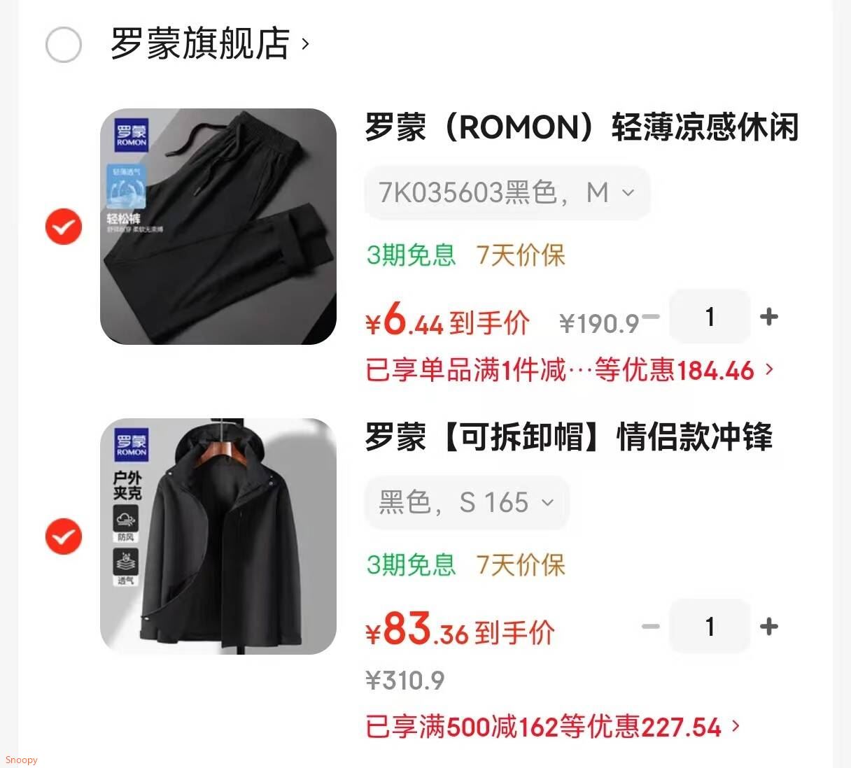 罗蒙 轻薄凉感休闲裤 冲锋夹克,各拍1件【89】